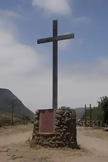 Baja California's northern border with Alta California was first established to demarcate areas of Franciscan and Dominican missionary authority, precisely set on August 19, 1773, near San Juan Bautista Creek by Fray Francisco Palóu. A marker stands on the line formerly dividing the two countries. The marker is behind the ruins of Misión San Miguel Arcángel de la Frontera, in La Misión, Baja California. Palóu's line was adopted as the provincial dividing line in 1804.[3]