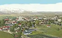 The Oregon Short Line Railroad came to Baker City in 1884, prompting growth; by 1900 it was the largest city between Salt Lake City and Portland and a trading center for a broad region.[1] In 1910, Baker City residents voted to shorten the name of the city to simply Baker, the name change becoming official in 1911; Another vote in 1989 restored the name to Baker City.[10]