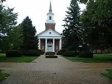 Baker Memorial Chapel is a building on the campus of McDaniel College, in Westminster, Maryland, that was dedicated April 20, 1958. The chapel was built in memory of W.G. Baker, Joseph D. Baker, Daniel Baker, and Sarah Baker Thomas. When the initial endowment was announced in 1955 both the donor's identity and the identity of the memorialized individuals were unknown. As conceived, the new chapel was to have a capacity of approximately 900, and was "expected to be of Georgian colonial architecture in keeping with the design of other recent buildings on the campus."[1][2]