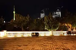 The TV tower was designed on the basis of the decision of the Council of Ministers of the USSR after the order from the Ministry of Communications of Azerbaijan State Institute of the Ministry of Communications of the USSR. Construction work began in 1979 and according to the project construction plan it should have been completed in 1985.[1][2] After the return of Heydar Aliyev to power in 1993, the construction of the tower was continued, and in 1996 with his participation, the official opening ceremony of the complex was carried.[3]