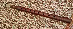 Balaban, or balaman[7] (Azerbaijani: Balaban – بالابان); Persian: بالابان) is cylindrical-bore, double-reed wind instrument about 35 centimetres (14 in) long with eight finger holes and one thumb hole. This instrument is played in the eastern part of Iran's historic Azerbaijan region as well as in the Republic of Azerbaijan (where it is also called Düdük according to the Encyclopædia Iranica).[6] Balaban, Mey, and Duduk are almost identical, except for historical and geographical differences.[8]
