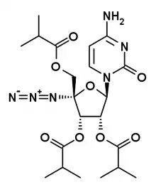 Balapiravir (R-1626, Ro4588161) is an experimental antiviral drug which acts as a polymerase inhibitor. There were efforts to develop it as a potential treatment for hepatitis C, and it was subsequently also studied in Dengue fever, but was not found to be useful. Lower doses failed to produce measurable reductions in viral load, while higher doses produced serious side effects such as lymphopenia which precluded further development of the drug.[1] Subsequent research found that excess cytokine production triggered by Dengue virus infection prevented the conversion of the balapiravir prodrug to its active form, thereby blocking the activity of the drug.[2]