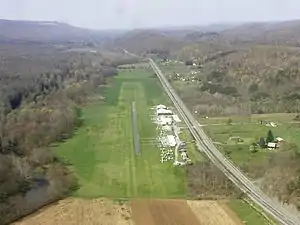 Ridge Soaring Gliderport, the only airport in the valley, is active (except in winter) with pilot training and glider rides. The former Peterson Memorial Airport, near Tyrone, closed in 1976, and was converted to an industrial park.