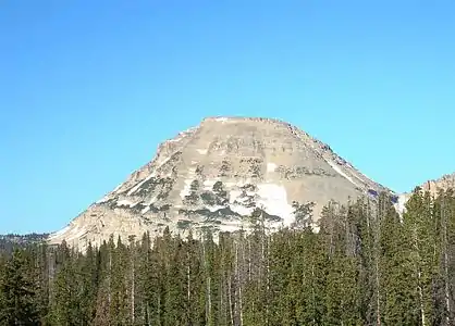 The mountain has a prominence of 1,823 feet (556 m)[1] and is home to mountain goats, pika, and a number of species of wildflowers. Utah State Route 150 (SR‑150) passes just east of the mountain.[3]