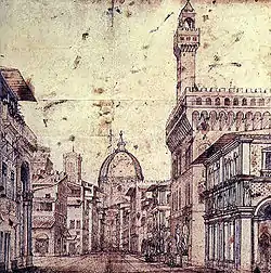 As an architect his engineering skills were firmly to the forefront, rather than an interpretation on the finer and more sophisticated points of rinascimento architecture. Impregnable fortresses such as the Fortezza Medicea at Siena, and bastide towns, and bridges are his trade mark rather than elegant palazzi. This is not to say Lanci was a man lacking in sophistication, one of his more surprising talents was designing some of the sets for the lavish theatrical and dramatical performances for which the Medici court was famed. As with his architecture, though, it was his engineering skills even here which dominated.