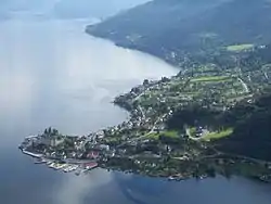 Balestrand (locally called Holmen) is a village in Sogndal Municipality in Vestland county, Norway. The village is located on the northern shore of the Sognefjorden, at the mouth of the small Esefjorden. It sits about 20 kilometres (12 mi) west of the village area of Leikanger-Hermansverk and about 7 kilometres (4.3 mi) northwest of the village of Vangsnes (on the southern shore of the Sognefjorden). The small village of Tjugum lies less than 700 metres (2,300 ft) north of Balestrand, across the Esefjorden. The local Tjugum Church is located there, serving the people of the village of Balestrand.