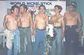 ![]() Original Balintawak club members from left to right: José Villasin, Johnny Chiuten, Venancio Bacon, and Teofelo Velez. | |