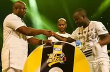 The MTN Hitmaker is an original talent hunt reality show opened to Ghanaians who believe they are bound to be Hitmakers.[29] MTN Hitmaker strives to discover and nurture the great creative potential in Ghana. The ultimate winner of the MTN Hitmaker show wins GH¢100,000 recording deal. Ball J was selected as one of the music producers/sound engineers for the MTN Hit Maker reality show since the show began during the later part of 2012.[30][31] Togbe, winner of the Hitmaker Season 3 was from the camp of Nu Afrika Records. He walked away with the prize of GH¢100,000 record deal when he emerged as the winner for season 3.[32][33][34] Because he was once an artiste of Nu Afrka Record, Ball J was his sound engineer. His debut track Number 9 (produced by Ball J) which featured hiplife heavyweight Kwawkese was released a few months ago and is steadily climbing the charts.[35]