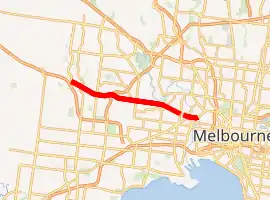 Ballarat Road (in its westernmost part the Western Highway) is a major urban arterial road in the western suburbs of Melbourne, Victoria, Australia.