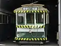 - Number 18: built in 1913 for the Prahran & Malvern Tramways Trust, it was numbered PMTT 63.[10] It was an H class tram, single truck, known as an open California combination car. When the MMTB took over in 1919 it was renumbered H 63, and then changed in 1928 to A 63.[10] It was sold to Ballarat in 1931 and became Ballarat No.18. It completed 748,841 miles in Ballarat. In 1971 it was donated to the Borough of Sebastopol by the SECV and put on display in a park. Restored by the museum in 1982,[13] the tram is in regular service. It is painted in 1960s SEC colors.