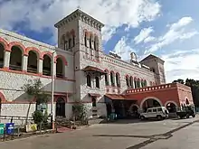 Ballari Junction railway station (station code: BAY) is a main railway station in Ballari district, Karnataka. It serves Ballari city. This is one of the oldest railway stations in India, and possibly the second in karnataka, built by the British Raj more than 150 years ago. The foundation stone for Ballari Junction was laid on 1869. Mahatma Gandhi visited Ballari and spent about eight hours at the railway station here on 1 October 1921.[1] station consists of four platforms for its junction for three routes: