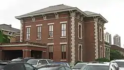 Bals–Wocher House is a historic home located in Indianapolis, Indiana. It was built in 1869–1870, and is a three-story, Italianate style brick dwelling with heavy limestone trim. It has a low hipped roof with deck and paired brackets on the overhanging eaves. It features stone quoins and an off-center arcaded loggia.[2]: 2–3