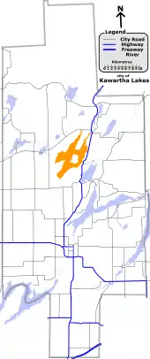 ![]() Location of the lake with respect to the other Kawartha lakes; Balsam Lake marked 'C' |