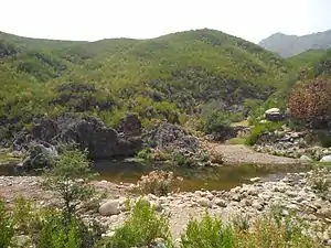 The Baluchistan xeric woodlands ecoregion (WWF ID: PA1307) covers the middle elevations of a series of mountain ranges of western Pakistan and northeastern Afghanistan, reaching 1,200 kilometres (750 mi) from the Arabian Sea in the south to the Hindu Kush Mountains and the Himalayas in the north. The characteristic vegetation is xeric (dry) woodlands of shrubs and herbaceous cover. The region has rich biodiversity but relatively few endemic species.[2][3][1][4]
