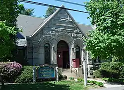Bancroft Memorial Library is the public library serving Hopedale, Massachusetts. It is located at 50 Hopedale Street in the town center, in a fine Romanesque building built in 1898-99 and listed on the National Register of Historic Places.[1]