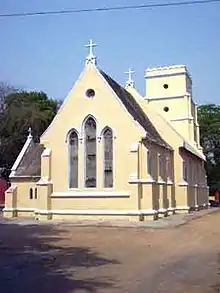 St. George's Church aka Yellow Church, established in 1835 AD, is the most famous and oldest church of Banda. Some records have been found that proved that Christianity was in Banda before 1809 AD. Yellow Church was built by Church of England, India for regular prayers of Anglo-Catholic Englishmen and their families living in Banda during British period. Earlier, the Church was under the Church of North India, Calcutta Diocese, but after 1893 a new Diocese of Lucknow was carved out from the Calcutta diocese. The Church is dedicated to the British patron saint George the Martyr. The Church has many historic memorials of British officers in Banda. There is a grave of British officers inside the church. Outside the Church, there are three graves of British officers from the Royal Army and the grave of the first Chaplain of the church. During 1857 revolt, no damage was made to the Church. The roof gardens of this Church is made up of English cast iron. The Church is built in Italian style with conical tops and tall windows. The church was Anglo-Catholic. It is also known as the garrison church of the city. It is counted among the oldest Anglican churches in northern India. Now the church is under the Church of North India, Diocese of Lucknow.