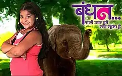 Bandhan – Saari Umar Humein Sang Rehna Hai (also known as Bandhan - Ali Malli Mamai in Sri Lanka)[1] was an Indian television drama show, which premiered on 16 September 2014 and aired on Zee TV until 17 April 2015.[2] Bandhan is the story of a little girl, Darpan, and her adopted brother, Ganesh the elephant. The show took a 10 year leap in the episode of 27 January 2015. Darpan marries a misguided man, Raghav, and must defeat the person who destroyed her family, Vishwasrao Patil. Can she do this? Bandhan tells the story of a bond between human and animal.