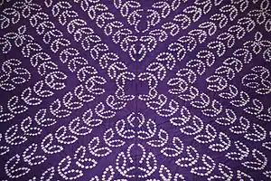 Bandhani, one of the oldest known methods of tie-dyeing, is still widely practiced in western India today. The fabric is made by pinching very small portions of cloth and tying them by plucking the cloth with the fingernails into many tiny bindings that form a figurative design to form an intricate pattern of dots. The cloth is then placed into different dye vats to form bright and beautiful colors.