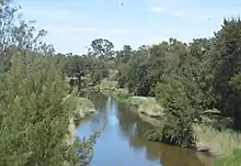 The civil parish is on the Castlereagh River and the town of Mendooran, New South Wales is on the opposite bank.