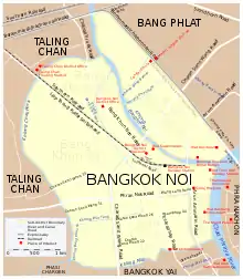 Bangkok Noi (Thai: บางกอกน้อย, pronounced [bāːŋ.kɔ̀ːk nɔ́ːj]) is one of the 50 districts (khet) of Bangkok, Thailand. Neighboring districts are (from north clockwise) Bang Phlat, Phra Nakhon (across Chao Phraya River), Bangkok Yai, Phasi Charoen, and Taling Chan.