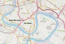 After the Siamese revolution in 1932, instead of transferring cargo from ship to ship moored in the harbour bays of Ko Sichang and Bangkok, the government wanted to build a port. In 1934 they contacted the League of Nations headquarters in Geneva, Switzerland to advise on the construction of a modern harbour. There were two proposals for the location, the Khlong Toei District and Samut Prakan. Decision was made for the Khlong Toei District. A royal decree expropriated land for the construction of a port in Bangkok on 6 August 1935. Initially, this included almost all of the Yan Nawa District and was part of Bang Kho Laem District.[2] Construction of the port and dredging of the Chao Phraya River started in 1938. Construction was interrupted due to World War II in 1940. At the end of the war, in 1945 the pier was only 1,500 m (4,920 ft) long and work on the construction of the port resumed with a loan from the World Bank. The first phase of the port was completed in 1947 and opened for the first time. Expanding of the port started, with also dredging of the navigator channels from the mouth of the Chao Phraya River in Samut Prakan Province to the Bangkok Port, a total distance of 66 km (41 mi).[3]