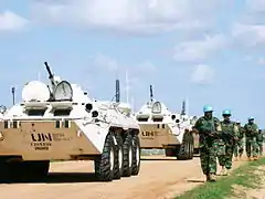 Later, as part of the UNIKOM force deployed to Kuwait and Saudi Arabia following the Gulf War the Bangladesh Army sent a mechanised infantry battalion (approx. 2,193 personnel). Since then, the Bangladesh Army has been involved in up to thirty different UNPKOs in as many as twenty five countries.[49] This has included activities in Angola, Namibia, Cambodia, Somalia, Sudan, Eritrea, Uganda, Rwanda, Bosnia & Herzegovina, Mozambique, former Yugoslavia, Liberia, Haiti, Tajikistan, Western Sahara, Sierra Leone, Kosovo, Georgia, East Timor, Congo, Côte d'Ivoire and Ethiopia.