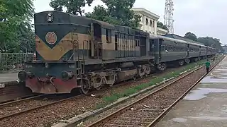 ![]() Train at Azimnagar Rail Station, Natore, Bangladesh | |||||||||||||||||||