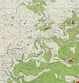 Sheikh Salih was succeeded by his son Umar Salih al-Barghouti, who aligned Bani Zeid with the Nashashibi clan of Jerusalem against the al-Husayni clan in the contest for political dominance in Palestine during the British Mandate period.[24] In 1936, during the Arab revolt in Palestine, the British Air Force struck a group of 400 local militiamen gathered outside of Deir Ghassaneh, killing about 130 of the fighters.[36] Later, in September 1938, the local rebel leadership held a meeting in the village where it was decided that Abd al-Rahim al-Hajj Muhammad and Arif Abd al-Raziq would each serve as general commander of the revolt on a rotational basis. Deir Ghassaneh was subsequently attacked by British forces backed by fighter planes when they were informed of the conference. A rebel commander, Muhammad al-Salih, was killed in the ensuing firefight.[37] The British Mandate Antiquities Authority noted in a January 1947 report that Deir Ghassaneh was "built on a medieval site", and on a hill 500 meters (1,600 ft) west of the village was a two-domed shrine dedicated to a Sheikh Khawas.[35]