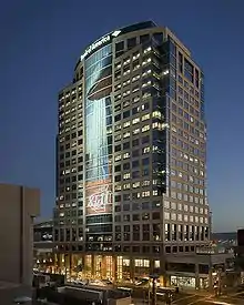 The Bank of America Tower is a highrise in downtown Phoenix, Arizona. The tower is the centerpiece of the Collier Center, a multi-use office and entertainment complex. The tower was completed in 2000 and serves as the state headquarters for Bank of America. It rises 360 feet (110 m), topping out at 23 floors. It was designed in the postmodern style by Opus Architects and Engineers.