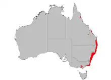 The hairpin banksia occurs along the east coast of Australia from the Dandenong Ranges east of Melbourne, Victoria, north through New South Wales and into Queensland. It is common north to Maryborough, with disjunct populations occurring as far north as the Atherton Tableland near Cairns. It occurs in a variety of habitats, from coastal heath (spinulosa and collina) and elevated rocky slopes (neoanglica and spinulosa) to inland dry sclerophyll forest dominated by eucalypts, where they form part of the understorey. Plants in exposed areas are generally considerably shorter than those in sheltered areas. It usually occurs on sand, but can be found in rocky clays or loams.[33]
