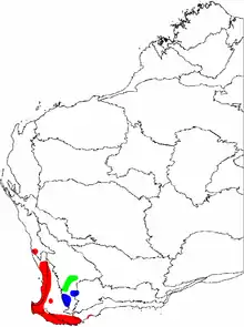 Species of B. subg. Isostylis occur only in Western Australia's South West Botanical Province. B. ilicifolia is widespread within 70 kilometres of the coast from Mount Lesueur in the north, south to Cape Leeuwin and east to Albany. The other two species occur further inland, and have quite limited distributions. B. cuneata occurs Brookton and Bruce Rock in the Avon Wheatbelt biogeographic region; while B. oligantha occurs slightly further south, in the vicinity of Wagin.[2][13]