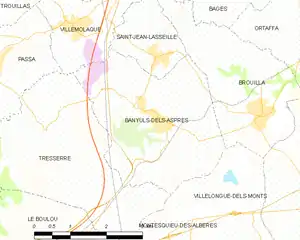 Map of Banyuls-dels-Aspres and its surrounding communes