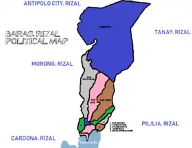 ![]() Map of Rizal with Baras highlighted | |