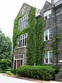 The Greek revival Hoffman Memorial Library was named after trustee and donor Charles Hoffman. When constructed, the library was the only building on campus not designed in the Collegiate Gothic style. The terra-cotta brick temple, built in the ionic order, cost $73,000 to construct and was one of the first fireproof structures in the nation.[6] The building was designed to be a physical representation of the college's early emphasis on Classical studies.[7]
