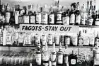 In the 1930s,[8] 1940s,[1] or around 1953[9] John Anthony put up a sign among the old license plates and other ephemera along the wall behind the bar that read "FAGOTS [sic] – STAY OUT". Though Anthony was known to be antagonistic towards gays,[1][10] going as far as posing (in front of his sign) for a picture in a 1964 Life article on "Homosexuality in America" over a caption where he exclaims "I don't like 'em...",[11] the sign was ostensibly put up as a response to pressure from the police who had a tendency towards discriminatory practices against homosexuals and consequently establishments that catered to the group.[8][9]