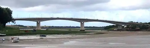 The bridge is a balanced cantilever design with reinforced concrete box girders supporting the arms.