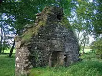 Drumbuie House, built in 1702, is one of the oldest inhabited houses in the Beith area and has been the home of the Boyd family for at least three generations.[55] Drumbuie was part of the Barony of Giffen and was feud out to various local millers and farmers in the 17th century.[56] Close records that Drumbuie Farm incorporates an early 18th-century two-storey house, originally thatched, which was built around 1736 for Hugh Patrick, this being stated on a plaque on the 1815 addition.[57] A James Nevin of Drumbuie was a witness to the will of Hugh Nevin of Kirkwood in 1677.[58] Drumbuie mill was located nearby on the Dusk Water, however no obvious physical remains are extant.