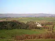 This hill, its name meaning the 'Bracken Crag',[15] lies about a mile and a half from Dunlop. It is said to be the site of the death of one of the Cunninghames of Aiket, killed by a Montgomerie during the times of the feuds between these families. The area is now known as the 'Brechna Braes.'