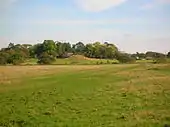 Near to the existing farm is the Hut Knoll[6] or more commonly Hutt Knowe (Huit is a 'stack' and Knowe is a 'knol' or low hill), also known as Bonshaw or Bollingshaw Mound, 17 m in diameter and 2.7 m high, variously described as a mounded corn-kiln or lime kiln, but unlike any other known example in the region.[7]