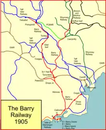 The Barry Railway Company was a railway and docks company in South Wales, first incorporated as the Barry Dock and Railway Company in 1884. It arose out of frustration among Rhondda coal owners at congestion and high charges at Cardiff Docks as well the monopoly held by the Taff Vale Railway in transporting coal from the Rhondda. In addition, the Taff Vale did not have the required capacity for the mineral traffic using the route, leading to lengthy delays in getting to Cardiff.