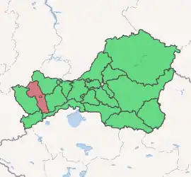 Barun-Khemchiksky District (Russian: Бару́н-Хемчи́кский кожуун; Tuvan: Барыын-Хемчик кожуун) is an administrative[1] and municipal[5] district (raion, or kozhuun), one of the seventeen in the Tuva Republic, Russia. It is located in the west of the republic. The area of the district is 6,290 square kilometers (2,430 sq mi).[2] Its administrative center is the rural locality (a selo) of Kyzyl-Mazhalyk.[1] Population: 12,847 (2010 Census);[3] 12,683 (2002 Census);[7] 31,421 (1989 Census).[8] The population of Kyzyl-Mazhalyk accounts for 39.5% of the district's total population.[3]
