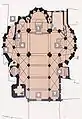 The interior has three naves and three apses presbytery, covered by a dome and surrounded by an ambulatory.[6]