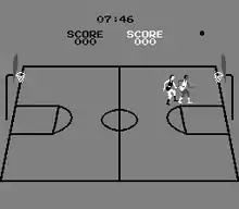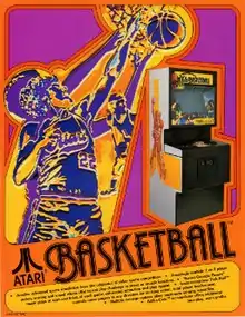Basketball is an arcade game released in May 1979 by Atari, Inc.[2] It was the first basketball video game to make use of a trackball for player movement and the first to use the angled side view which became a commonly used perspective in the basketball video games that followed.[3]