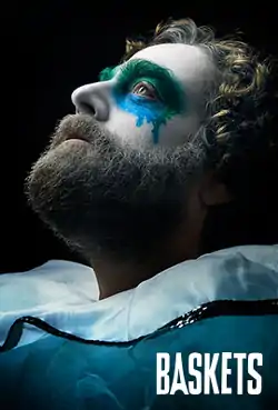 Baskets is an American comedy-drama television series that premiered on January 21, 2016, on FX.[2] The series was co-created by Louis C.K., Zach Galifianakis, and Jonathan Krisel; Krisel is also the showrunner and director. Galifianakis stars in the dual lead role as Chip Baskets, a failed professional clown in Paris, who instead becomes a local rodeo clown in Bakersfield, California, and his identical twin brother, Dale Baskets. Galifianakis, C.K., M. Blair Breard, Dave Becky, Marc Gurvitz and Andrea Pett-Joseph serve as executive producers, with FX Productions as the production company.[3] In 2017 C.K.'s production company Pig Newton had all ties to the show and FX cut after C.K. admitted to sexual misconduct with five women.[4] On May 24, 2018, FX renewed the show for a fourth and final season, which premiered on June 13, 2019.[5][6] The series ended on August 22, 2019.[7]