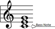 - The bass note is the root or fundamental of the chord. The chord is in root position.