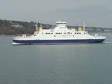 Bastø Fosen AS is a shipping company that operates the Moss–Horten Ferry, the most trafficked ferry route in Norway.[2] The company, which operates three ferries MF Bastø I, MF Bastø II and MF Bastø III, carried 1.3 million cars and 2.5 million passengers in 2006.[3] The crossing takes 30 minutes, and the ferries provide two departures per hour throughout the day in each direction, with reduced schedules on the weekends.[4]