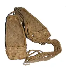 In Russian, they are called lapti (лапти, sing. лапоть, lapot); this word is used as a derogatory term for cheap and short-lived footwear and, in the form lapotnik (лапотник), for an uneducated person, notionally one who is too poor to afford good shoes and wears bast shoes instead.[2] The MiG-105 "Spiral" spaceplane was nicknamed Lapot for the shape of its nose.