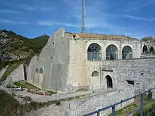 Above the Bastille, at an elevation of 630 m (2,070 ft),[13] Mount Jalla can be reached on foot in 30 minutes from the glacis of the fort. There one can find the ruins of the cable car that once served to transport limestone extracted from the Vicat quarries from 1875, but more importantly one also finds the national memorial to the Mountain Troops. Close by is a viewpoint that looks out over the fortress of the Bastille.