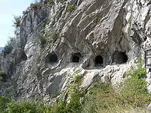 In 1844, to complete the defences, a system of linked caverns was excavated in the cliffs of Mount Jalla in front of the fort. A track not visible from the glacis and then an underground passage allowed troops to move between these caverns and the drawbridge at the entrance to the fort. These cavern batteries were large enough to house a munitions dump, so that troops were able to fire on attacking forces from the rear. Assailants would therefore find themselves trapped between fire from opposite directions. These caverns are known locally as the Mandrin Caves, an obvious anachronism as the dauphinois bandit and smuggler died some 90 years before their construction.