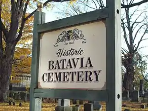 Batavia Cemetery is located on Harvester Avenue in Batavia, New York, United States. It opened in 1823 and contains over 8,000 graves, mostly from the 19th century. In 2002 it was listed on the National Register of Historic Places,[2] the first of two cemeteries in Genesee County to be so designated.